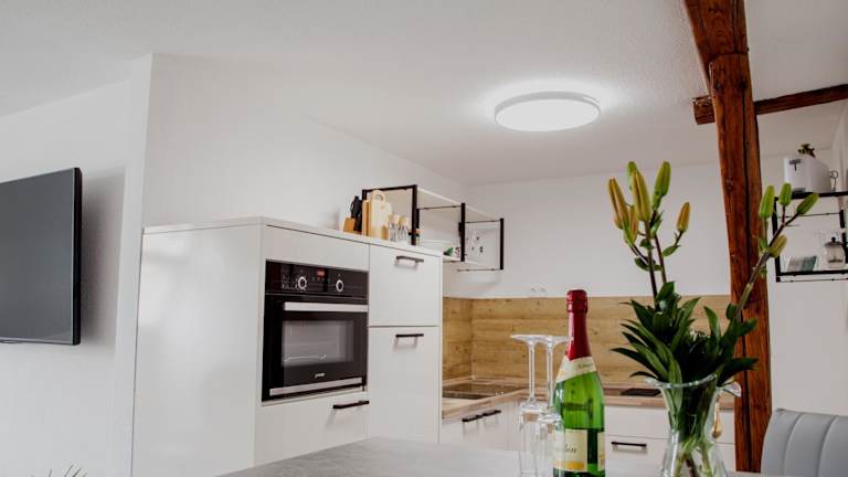 Die Ferienwohnung verfügt über ein Schlafzimmer, ein Wohnzimmer mit Kabel-TV, eine voll ausgestattete Küche mit Kühlschrank und Geschirrspüler sowie ein Badezimmer mit Dusche.