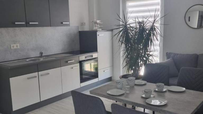 Die Ferienwohnung besteht aus einem Schlafzimmer, einem Wohnzimmer, einer voll ausgestatteten Küche mit Kühlschrank und Kaffeemaschine sowie einem Badezimmer mit Dusche und Badewanne. Handtücher und Bettwäsche werden bereitgestellt.
