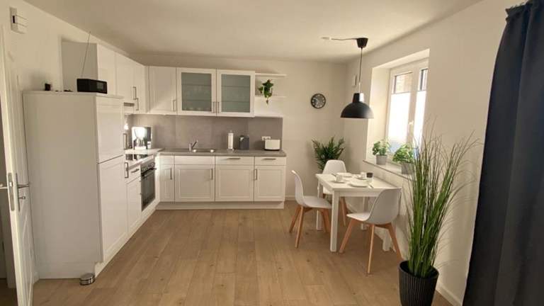 Die Ferienwohnung hat ein Schlafzimmer und ein Wohnzimmer mit Kabel-TV. Eine voll ausgestattete Küchenzeile mit Kühlschrank und Geschirrspüler sowie ein Badezimmer mit Dusche sind ebenfalls vorhanden. Handtücher und Bettwäsche werden zur Verfügung gestellt.