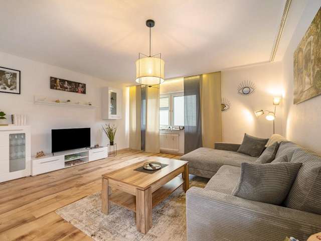 Die Ferienwohnung Neue 4 Zi Küche Bad Parknähe bietet Übernachtungsmöglichkeiten in einer heimeligen Atmosphäre. Sie ist mit Annehmlichkeiten wie kostenlosem Wifi und einem TV ausgestattet und umfasst einen Balkon.