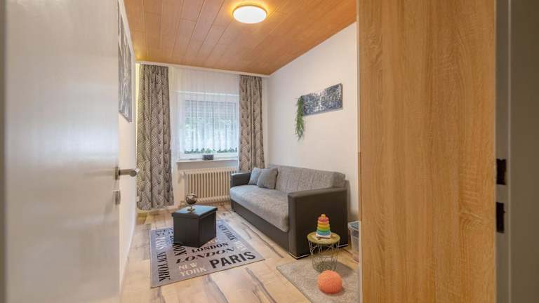 Die Ferienwohnung befindet sich in Neunkirchen, etwa 23 km von Saarmesse und Congresshalle Saarbrücken entfernt. Hauptbahnhof Saarbrücken ist ebenfalls in einer Distanz von 24 km erreichbar, während der Flughafen Saarbrücken 26 km entfernt liegt. Die Gegend bietet zudem Möglichkeiten zum Velofahren und Wandern.