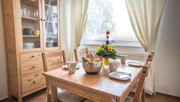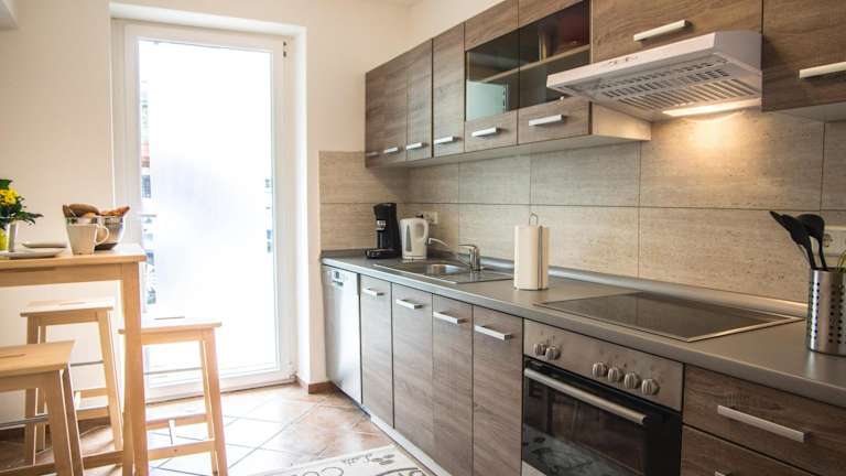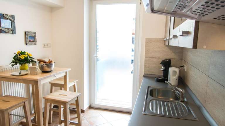 Die Ferienwohnung besteht aus einem Schlafzimmer und einer gut ausgestatteten Küche, die mit Kühlschrank und Geschirrspüler ausgestattet ist. Handtücher und Bettwäsche können gegen Aufpreis bereitgestellt werden.