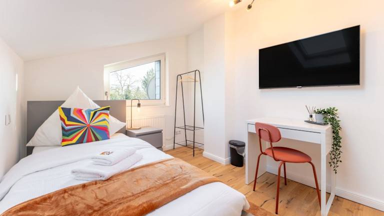 Die Ferienwohnung ist mit insgesamt 5 Schlafzimmern ausgestattet und verfügt über eine vollständig eingerichtete Küche, die über einen Kühlschrank und einen Geschirrspüler verfügt. Es gibt ein Badezimmer mit Dusche, kostenlosen Pflegeprodukten und einer Waschmaschine. Handtücher und Bettwäsche werden bereitgestellt.