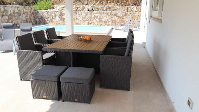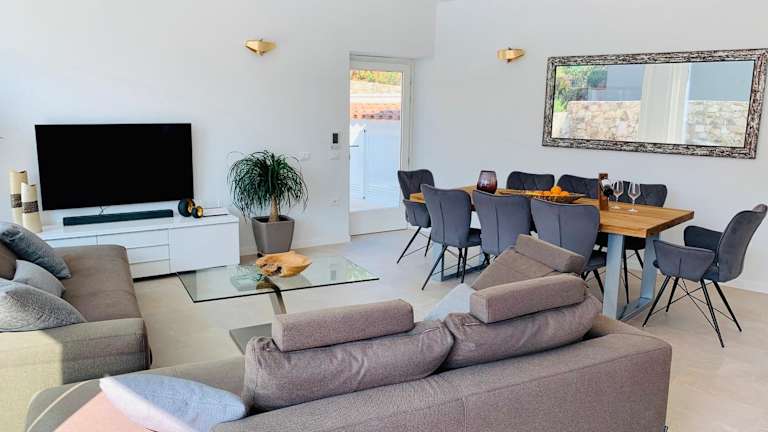 Das Ferienhaus besteht aus 2 Schlafzimmern und einem Wohnzimmer. Eine voll ausgestattete Küche mit Kühlschrank und Kaffeemaschine ist vorhanden, ebenso wie 2 Badezimmer mit Bidet und Dusche. Handtücher und Bettwäsche werden bereitgestellt, und die Unterkunft ist klimatisiert.