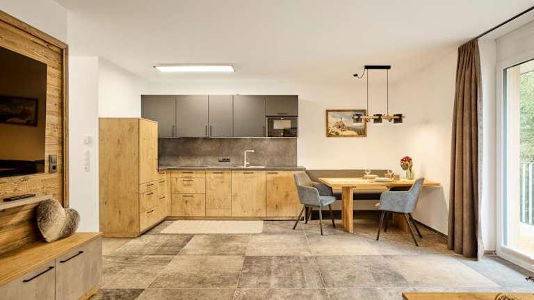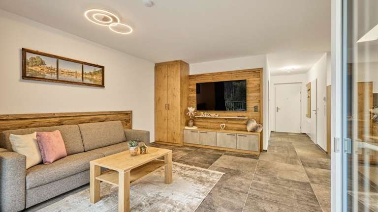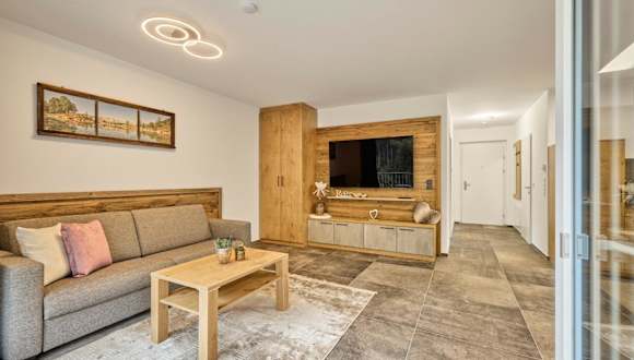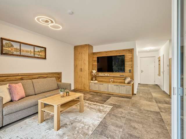 Das Apartment umfasst 1 Schlafzimmer, ein Wohnzimmer und ein Badezimmer mit einer Dusche. Eine gut ausgestattete Küchenzeile mit Kühlschrank und Geschirrspüler ist ebenfalls vorhanden. Zudem bietet die Wohnung einen Balkon mit Bergblick und ist mit einem Flachbild-TV ausgestattet. Handtücher und Bettwäsche werden bereitgestellt.