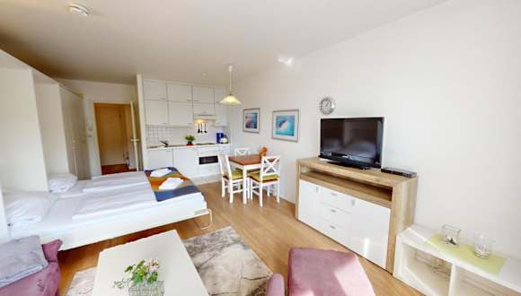 Das Apartment im NeuKlosterhof App. 16 verfügt über ein komfortables Wohnzimmer und eine voll ausgestattete Küche mit Kühlschrank und Backofen. Ein Balkon bietet Ihnen die Möglichkeit, die frische Luft und die Aussicht zu genießen. Kostenloses WLAN ist ebenfalls vorhanden, um mit der Welt in Verbindung zu bleiben.