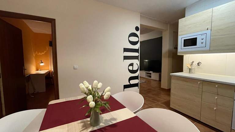 Die Ferienwohnung besteht aus einem Schlafzimmer, einem Wohnzimmer sowie einer voll ausgestatteten Küche mit Kühlschrank und Kaffeemaschine. Das Badezimmer ist mit einer Dusche und kostenlosen Pflegeprodukten ausgestattet. Handtücher und Bettwäsche werden bereitgestellt, und die Unterkunft bietet kostenloses WLAN.