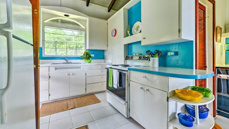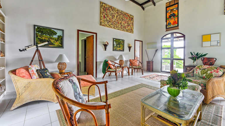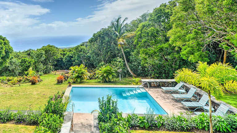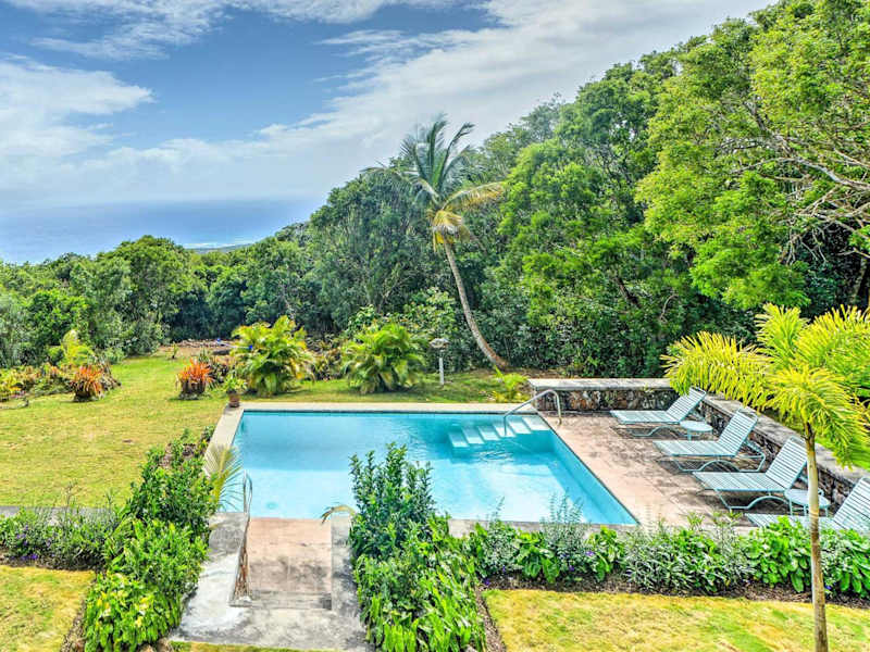 Nevis Home with Pool, Stunning Jungle and Ocean Views! ist ein einzigartiges Ferienhaus, das mit einem Balkon und einem Aussenpool ausgestattet ist. Die Bar sorgt für angenehme Momente.
