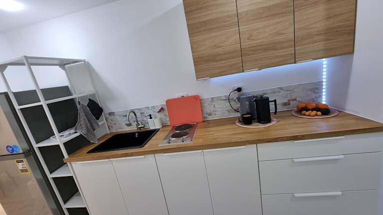 Die Ferienwohnung ist mit zwei Schlafzimmern ausgestattet und verfügt über eine Küche, die mit einem Kühlschrank und einer Herdplatte bestückt ist. Ein TV und ein Sitzbereich tragen zur heimeligen Atmosphäre bei. Das Badezimmer ist mit einer Badewanne oder Dusche ausgestattet. Handtücher und Bettwäsche werden in dieser Unterkunft zur Verfügung gestellt.