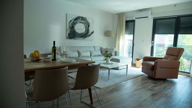 New Aesthetic Haven Hedonica 6 Apartment bietet Unterkünfte mit Blick auf den Pool, ausgestattet mit einem Balkon und einer Kaffeemaschine. Die Ferienwohnung umfasst ein Schlafzimmer, ein Wohnzimmer, einen Essbereich und eine voll ausgestattete Küche. Gäste haben die Möglichkeit, kostenfreien Privatparkplatz zu nutzen und eine Terrasse zu genießen.