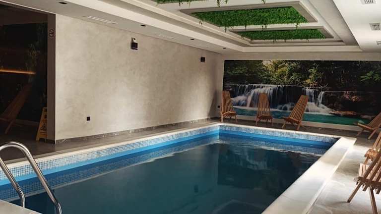 Das Apartment New, complete equipped apartment with Spa, indoor pool and parking place ist vollständig ausgestattet und verfügt über eine Sauna sowie einen Innenpool, der den Gästen zur Verfügung steht.
