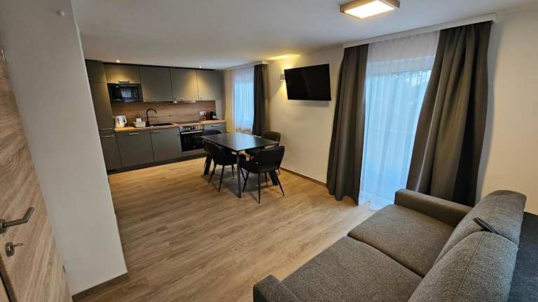 Die Ferienwohnung umfasst zwei Schlafzimmer, ein Wohnzimmer sowie ein Badezimmer mit Dusche. Zur Ausstattung gehören ein Flachbild-TV, eine gut ausgestattete Küche mit Kühlschrank und Geschirrspüler sowie die Bereitstellung von Handtüchern und Bettwäsche.