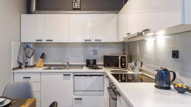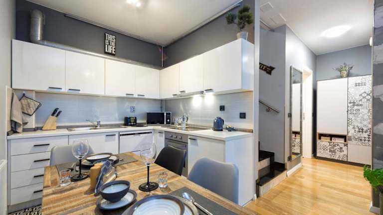 Die Ferienwohnung besteht aus einem Schlafzimmer und einem Wohnzimmer. Die voll ausgestattete Küche bietet alles Notwendige für eine Selbstverpflegung. Es gibt ein Badezimmer mit einer Badewanne sowie kostenlosen Pflegeprodukten. Handtücher und Bettwäsche werden in der Unterkunft bereitgestellt.
