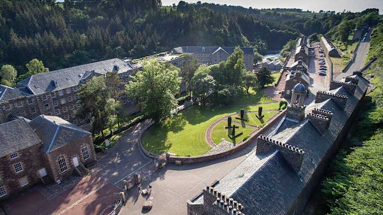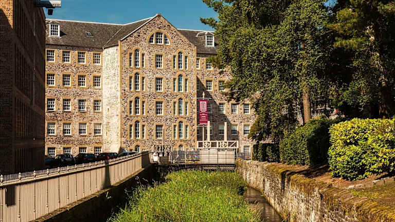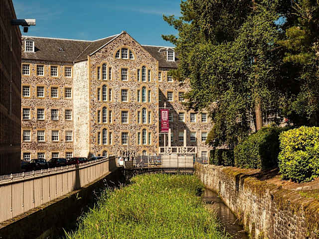 Das New Lanark Mill Hotel befindet sich an den Ufern des Flusses Clyde im historischen Dorf New Lanark, das eine UNESCO-Weltkulturstätte ist. Die Umgebung ist von einem schönen Waldgebiet geprägt und liegt etwa eine Autostunde von den Städten Edinburgh, Glasgow, Stirling und Ayrshire entfernt. Öffentliche Verkehrsmittel sind in rund 2 Kilometer Distanz erreichbar.