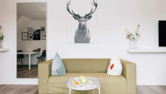 Das New Living City Appartement bietet eine helle und heimelige Wohnung mit Garten in einer ruhigen Umgebung. Die Unterkunft ist Nichtraucherzone und wurde unter Berücksichtigung von Sicherheitsrichtlinien der örtlichen Behörden gereinigt und desinfiziert.