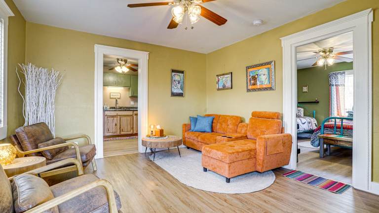 Das New Mexico Cottage Hot Springs Fed Tub On-Site bietet Übernachtungsmöglichkeiten in einem gemütlichen Ferienhaus. Die Unterkunft ist ausgerüstet mit einer Veranda/Pavilion und kostenlosem Wifi.
