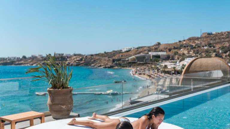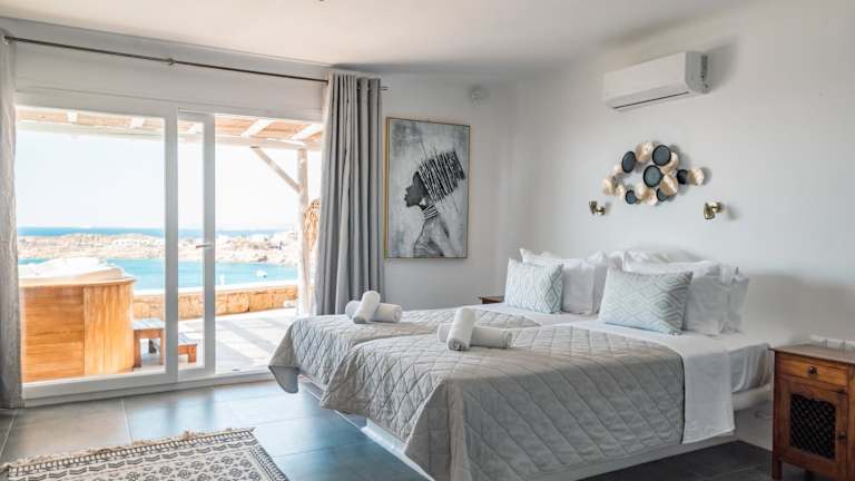 Das New Paradise Beach Resort liegt nur wenige Schritte vom Paradise Beach entfernt und ist 5 km von der Stadt Mykonos sowie 3 km vom Flughafen entfernt. Busse halten direkt vor der Unterkunft, und es besteht die Möglichkeit, ein Wassertaxi zu mieten, um Platis Yialos und andere Strände zu besuchen.