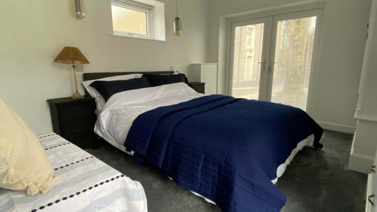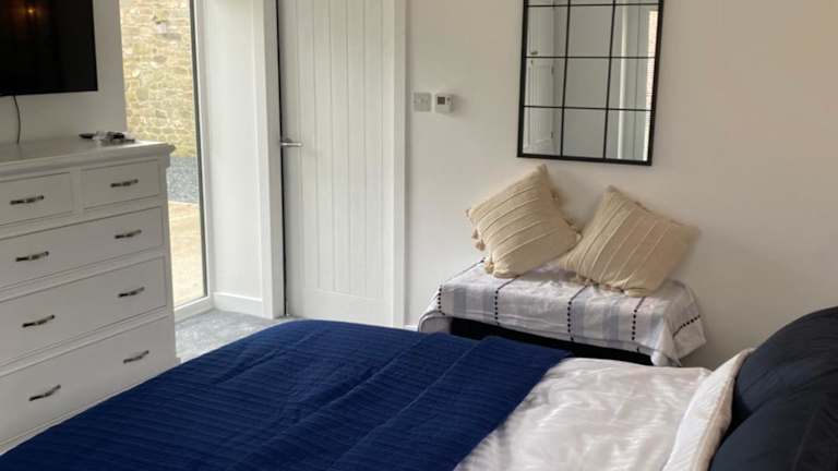 Die Ferienunterkunft umfasst ein Schlafzimmer, eine moderne Küche ausgestattet mit einem Kühlschrank und Geschirrspüler. Ein Flachbild-TV sowie ein behaglicher Sitzbereich sind ebenfalls vorhanden. Das Badezimmer ist mit einer Dusche ausgestattet. Bettwäsche und Handtücher werden bereitgestellt.