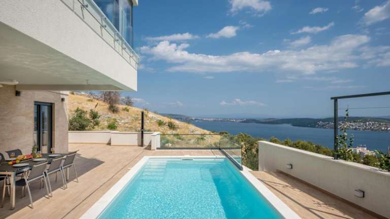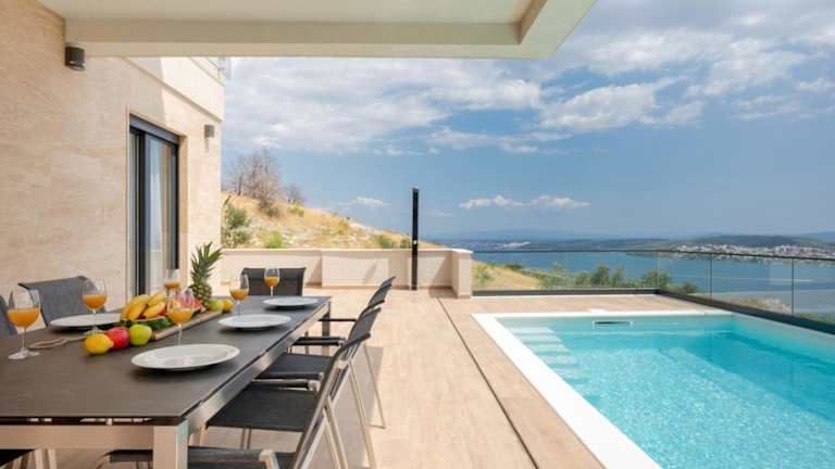 Die NEW Villa Astera besticht durch einen heimeligen Aussenpool sowie eine schöne Aussicht auf das Meer. Die Unterkunft umfasst ausserdem eine Terrasse und bietet eine angenehme Atmosphäre für entspannte Ferien.