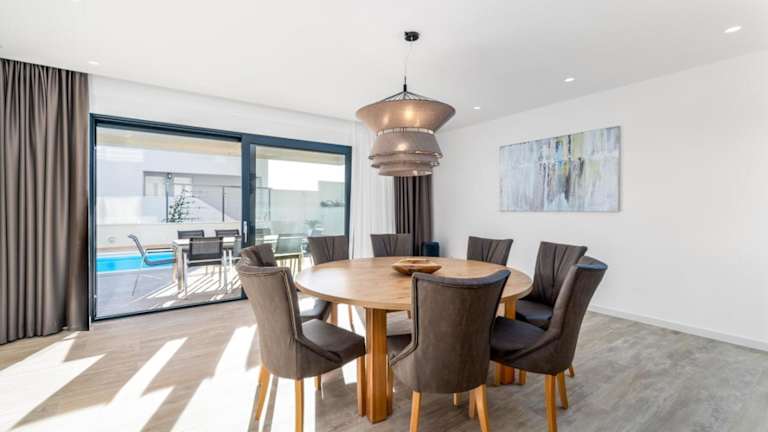 Die Villa verfügt über 4 Schlafzimmer und ein Wohnzimmer. Die voll ausgestattete Küche beinhaltet einen Kühlschrank und eine Kaffeemaschine. Es sind 3 Badezimmer mit Dusche und Haartrockner vorhanden. Handtücher und Bettwäsche werden bereitgestellt.