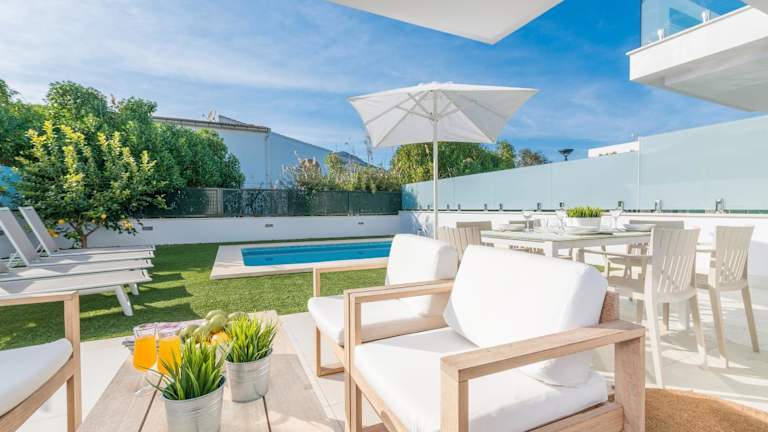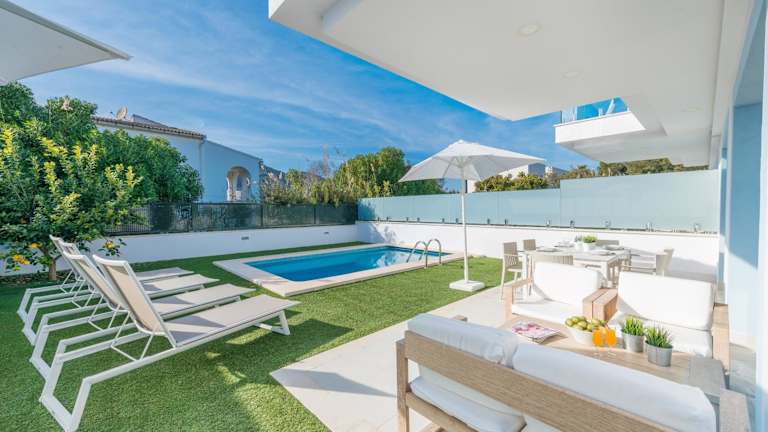 Die Villa bietet 3 Schlafzimmer, 2 Badezimmer, Bettwäsche und Handtücher. Ein Flachbild-TV und ein Essbereich sind ebenfalls vorhanden. Die Zimmer sind schallisoliert und bieten eine Klimaanlage. Zu den weiteren Annehmlichkeiten gehören ein Safe und Gartenmöbel auf der Terrasse.