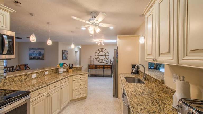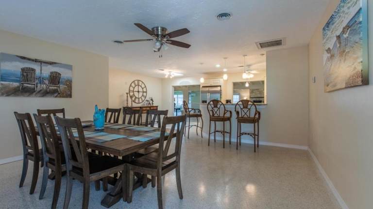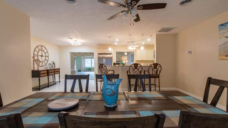 Das Ferienhaus ist klimatisiert und verfügt über 4 Schlafzimmer sowie Kabel TV. Eine gut ausgestattete Küche mit Kühlschrank und Geschirrspüler ist ebenfalls vorhanden.