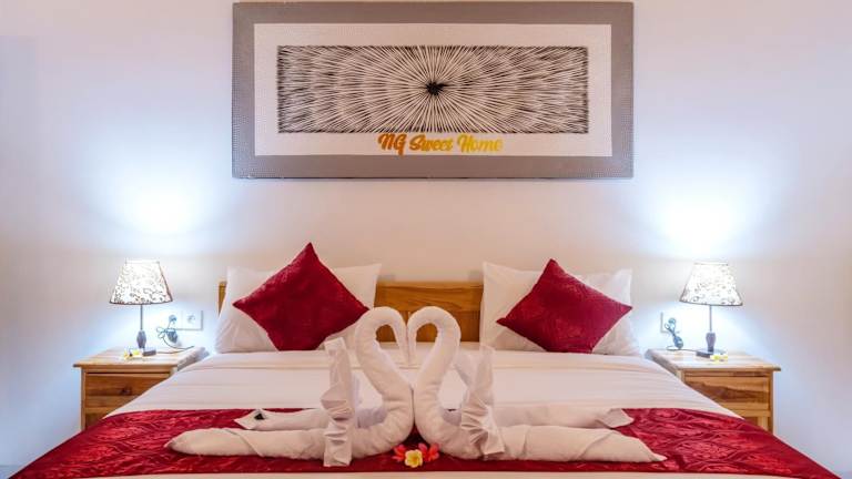 Die Zimmer in NG Sweet Home sind komfortabel eingerichtet und verfügen über einen Balkon mit Gartenblick. Jedes Zimmer ist mit einer Klimaanlage, einem Schreibtisch, einer Terrasse mit Poolblick, einem eigenen Badezimmer, einem Flachbild-TV sowie Bettwäsche und Handtüchern ausgestattet. Zudem stehen den Gästen ein Kleiderschrank und ein Wasserkocher zur Verfügung.