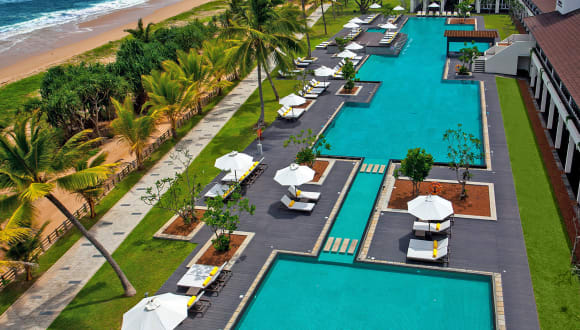 Das Café Bem serviert traditionelle srilankische Spezialitäten sowie asiatische und internationale Gerichte, die in großen, saisonal beeinflussten Buffets serviert werden, sowie ein À-la-carte-Menü und Live-Kochstationen mit Flussblick. 360 Restaurant, mit Blick auf den Ozean und den Fluss, bietet internationale Küche und ist auf srilankische Aromen spezialisiert. Suan Bua ist ein traditionelles und authentisches Thai-Restaurant. Der Ceylon Club serviert leichte Mahlzeiten, Erfrischungen und Nachmittagstee mit Live-Unterhaltung am Abend. Es gibt eine Swim-up-Poolbar. Zimmerservice ist ebenfalls verfügbar.
