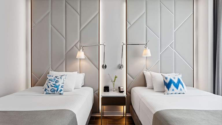 Die Zimmer sind mit einer individuell steuerbaren Klimaanlage ausgestattet und bieten beste Bequemlichkeit. Sie beinhalten ein Doppelbett, ein Queensize-Bett oder ein Kingsize-Bett, sowie einen Safe, eine Minibar und einen Schreibtisch. Kostenloses Wifi, ein TV-Gerät mit Satelliten-/Kabelempfang und Hausschuhe gehören ebenfalls zur Zimmerausstattung. Die Badezimmer sind mit einer Dusche und einem Haartrockner ausgestattet, sowie bieten Kosmetikartikel und eine Auswahl an Handtüchern.