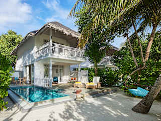 Beach Villas - Üppige Gärten und immergrüne Bäume umgeben unsere Beach Villas, die eine Mischung aus Luxus, Exklusivität und Privatsphäre bieten. Beginnen Sie den Tag mit einem entspannenden Bad unter der kaskadierenden Regendusche in Ihrem Gartenhof. Während der Zeit hören Sie das Gezwitscher der tropischen Vögel oder das Flüstern der Wellen. Nach einem langen Tag können Sie sich auf Ihrer privaten Terrasse in den Liegestuhl zurückziehen und die üppige Aussicht auf die Küste und die Umgebung genießen. 90,36 Quadratmeter. Beach Suites - Entdecken Sie den luftigen, offenen Raum unserer 231 m² großen Beach-Suiten, von denen jede eine beruhigende Aussicht auf die schimmernde Lagune bietet. Wunderschön mit Teakholzboden dekoriert, ist jeder Rückzugsort eine friedliche Oase, die Wärme und Raffinesse ausstrahlt. Schwelgen Sie in Ihrem großen privaten Tauchbecken und genießen Sie das kühle Nass mit einem tropischen Cocktail in der Hand. Familien-Duplex-Strand-Villa - Haben Sie Ihren unvergesslichen Familienurlaub mit unseren Family Duplex Beach Villas. Jede Villa verfügt über ein eigenes, großes privates Tauchbecken, in dem Sie die Zeit verbringen und sich mit den Kindern verbinden können. Gönnen Sie sich einen erholsamen Schlaf in einem der Schlafzimmer auf jeder Etage. Zimmergröße: 231 Quadratmeter Water Villas - Unsere Water Villas liegen über dem azurblauen Wasser der Lagune und bieten einen ungehinderten Blick auf das Meer, ein privates Infinity-Tauchbecken und eine Sonnenterrasse am Wasser. Vom Boden bis zur Decke reichende Fenster lassen Sie zu einer wunderschönen Landschaft aufwachen, während eine private Sonnenterrasse Ihnen gewährt direkter Zugang zum Meer. 118 qm. Presidential Suite - Die luxuriöse Suite, unsere Präsidentensuite mit einem Schlafzimmer, liegt direkt über der azurblauen Lagune. Diese Suite bietet einen Whirlpool und eine ausgedehnte private Sonnenterrasse mit Plüsch-Liegen und ist der Höhepunkt des Lebens am Meer. Wachen Sie mit herrlichem Meerblick auf und genießen Sie tropische Leckerbissen in Ihrem eigenen Kokon. 200 qm.