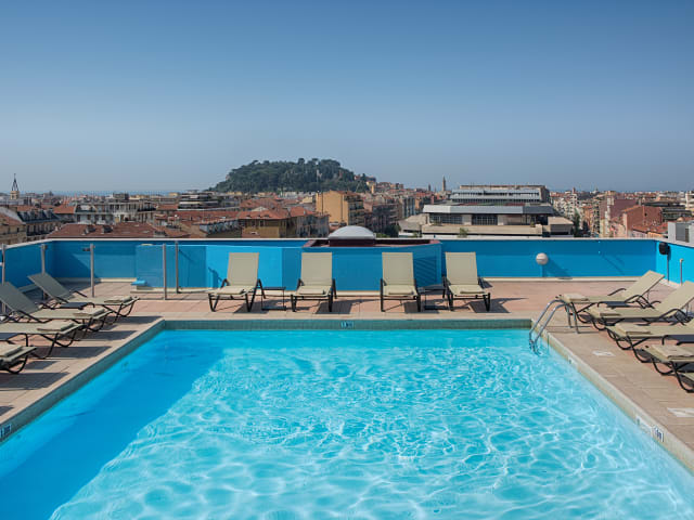 Das Hotel befindet sich sehr zentral in Nizza, nur etwa 700 m bis 1 km von der schönen Altstadt, dem Hafen und dem Kieselstrand entfernt. Das Acropolis-Kongresszentrum sowie eine Anbindung an das öffentliche Verkehrsnetz liegen in unmittelbarer Nähe, rund 100 m entfernt. Die Entfernung zum Golfplatz beträgt ca. 40 km, und die Skipisten sind etwa 70 km entfernt. Der Bahnhof ist ca. 800 m vom Hotel entfernt.