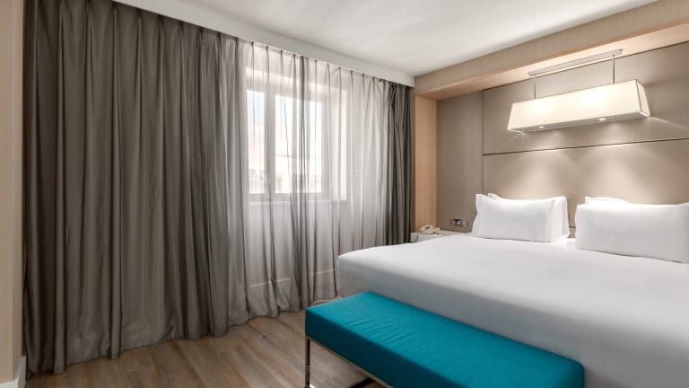Die modernen Zimmer sind klimatisiert und bieten eine individuell einstellbare Heizung. Sie sind ausgestattet mit einem Doppel-, Queensize- oder Kingsize-Bett, einem Safe, einer Minibar und einem Schreibtisch. Ein Kühlschrank, eine Tee-/Kaffeemaschine sowie ein Telefon mit Direktwahl stehen ebenfalls zur Verfügung. Zusätzlich gibt es einen Fernseher und kostenloses Wifi. Die Badezimmer sind mit Dusche und Badewanne ausgestattet und bieten Annehmlichkeiten wie Haartrockner und Bademäntel.