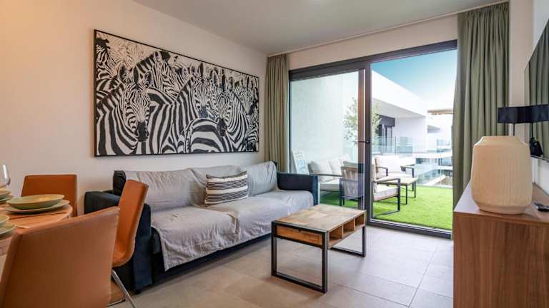 Die Ferienwohnung ist klimatisiert und besteht aus 3 Schlafzimmern. Sie ist mit einem Flachbild-TV sowie einer voll ausgestatteten Küche mit Kühlschrank und Geschirrspüler ausgestattet.