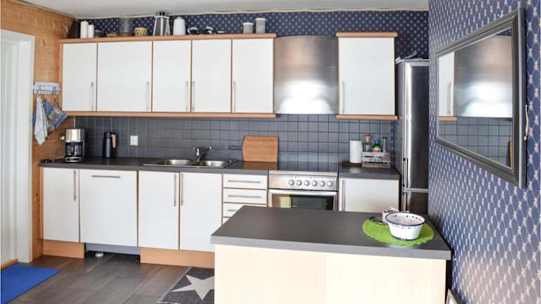 Das Ferienhaus ist mit einer voll ausgestatteten Küche ausgestattet, die einen Kühlschrank, einen Geschirrspüler, eine Waschmaschine, einen Ofen und eine Mikrowelle bietet. Es stehen Grillmöglichkeiten zur Verfügung.