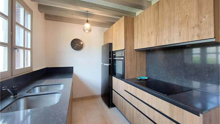 Das Ferienhaus umfasst ein Wohnzimmer mit Kabel-TV, eine voll ausgestattete Küche mit Kühlschrank und Geschirrspüler sowie ein Badezimmer mit Badewanne. Die Ausstattung ist sowohl für längere Aufenthalte als auch für kurze Besuche geeignet.