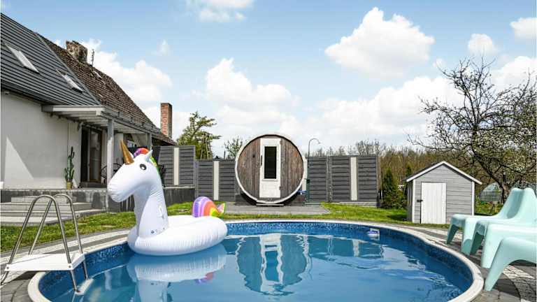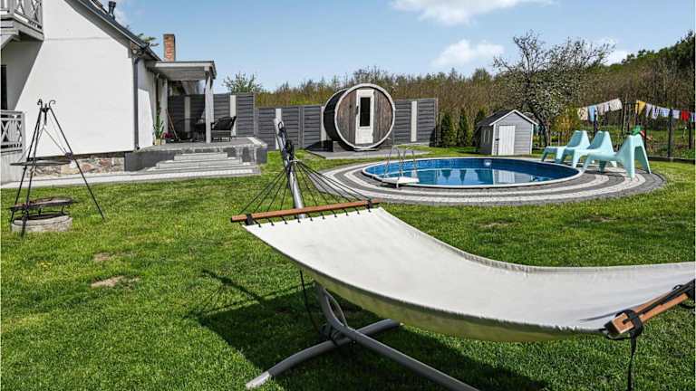 Das Ferienhaus bietet einen Aussenpool und eine Sauna für die Entspannung der Gäste. Zusätzlich sind Grillmöglichkeiten vorhanden.