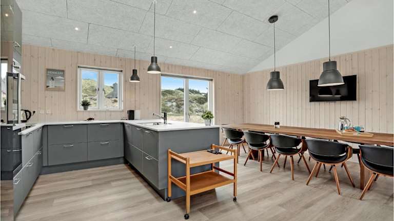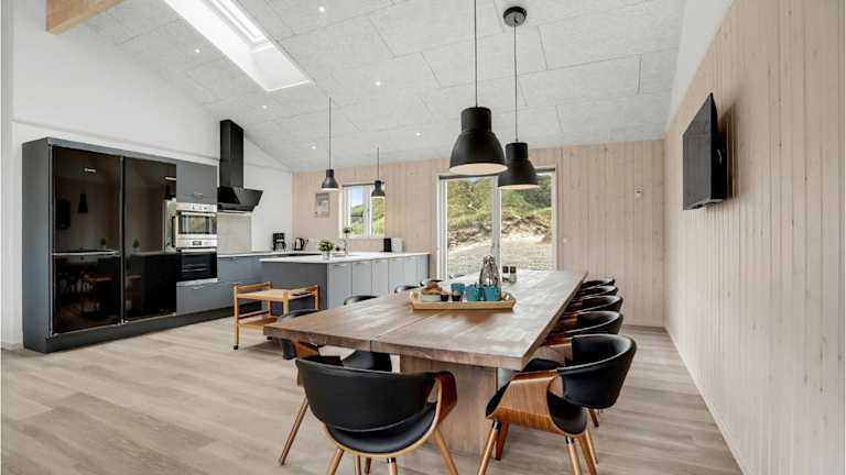 Nice Home In Løkken With Sauna bietet Übernachtungsmöglichkeiten direkt am Strand. Es handelt sich um eine Unterkunft mit 6 Schlafzimmern, einem Wohnzimmer mit einem Kabel-Flachbild-TV und einer voll ausgestatteten Küche.