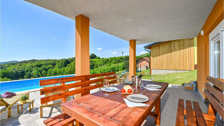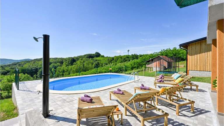 Das Ferienhaus Nice Home In Varazdinske Toplice zeichnet sich durch einen eigenen Pool aus und bietet eine umfassende Ausstattung für einen erholsamen Aufenthalt. Zu den Annehmlichkeiten gehören Klimaanlage, kostenloser Privatparkplatz und gratis WLAN in der gesamten Unterkunft. Die Unterkunft richtet sich an Gäste, die Ruhe und Entspannung suchen.