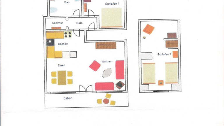 Die Ferienwohnung umfasst 2 Schlafzimmer sowie eine Küche, die mit einem Kühlschrank und einem Geschirrspüler ausgestattet ist. Ein Badezimmer mit Dusche, Haartrockner und Waschmaschine steht ebenfalls zur Verfügung. Handtücher und Bettwäsche werden bereitgestellt. Die Unterkunft bietet zudem Zugang zu einem Balkon.