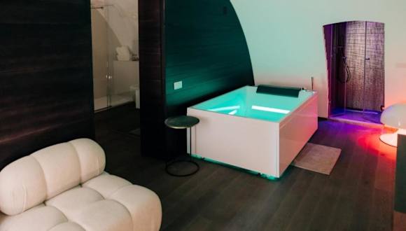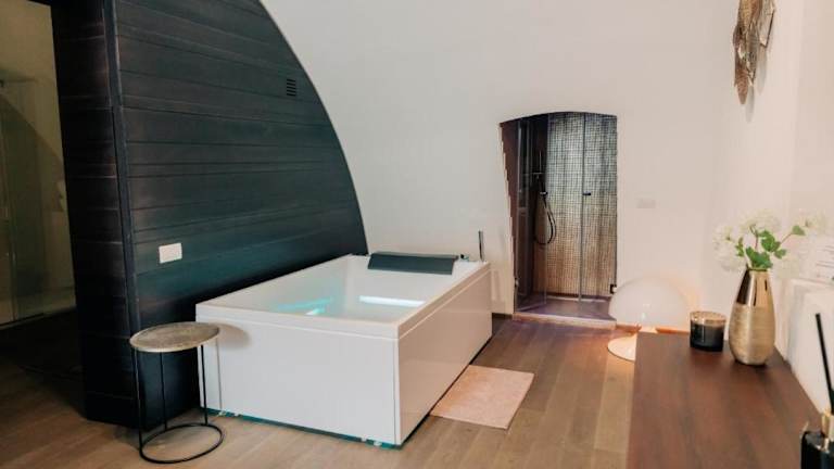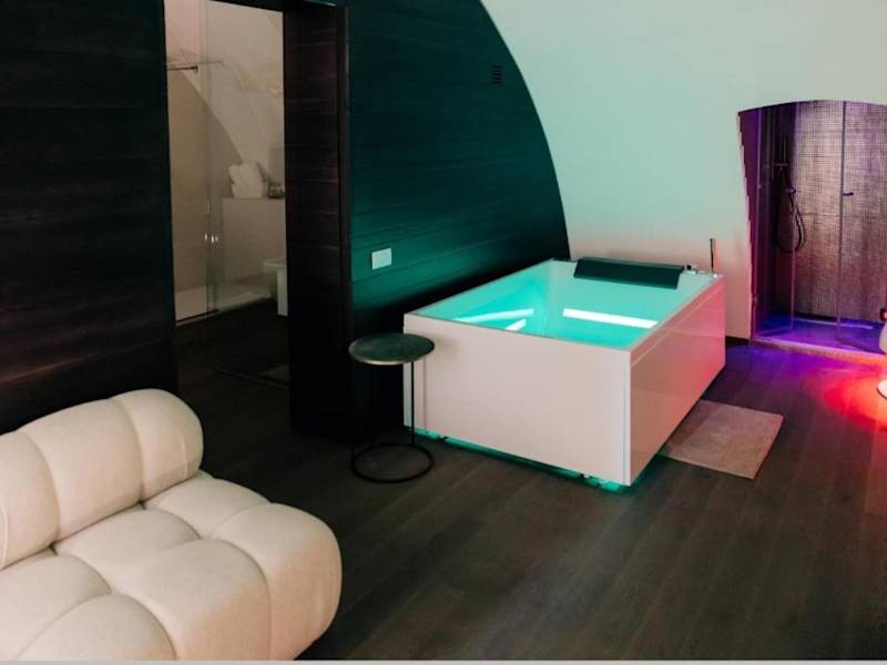 Die NICOLAUS SUITE Wellness Experience bietet eine heimelige Atmosphäre mit kostenlosem Wifi und einer Terrasse. Gäste haben Zugang zu einem Balkon und können in einem klimatisierten Ferienhaus entspannen, das mit modernen Annehmlichkeiten ausgestattet ist.