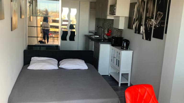 Die Ferienwohnung umfasst ein separates Schlafzimmer, eine voll ausgestattete Küche mit Kühlschrank und Mikrowelle sowie ein Badezimmer. Die Unterkunft bietet zusätzlich die Möglichkeit Handtücher und Bettwäsche gegen Aufpreis zu erhalten. Die Terrasse lädt zum Entspannen ein.