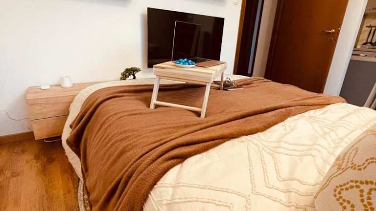 Die Ferienwohnung umfasst 3 Schlafzimmer und 1 Badezimmer mit Bidet und Dusche. Die Küche ist vollständig ausgestattet mit Kühlschrank, Ofen und Herdplatte. Das Wohnzimmer mit Sitzbereich und Essbereich bietet einen Flachbild-TV mit Kabelkanälen, eine Spielekonsole (PS2), einen DVD-Player sowie einen CD-Player.