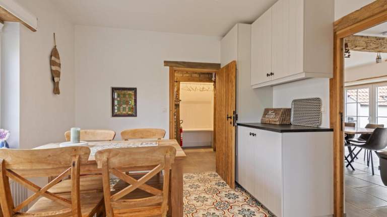 Eine voll ausgestattete Küche mit Kühlschrank und Geschirrspüler ermöglicht es den Gästen, ihre eigenen Mahlzeiten zuzubereiten. Eine Kaffeemaschine steht ebenfalls zur Verfügung. Weitere gastronomische Angebote sind nicht vorhanden.