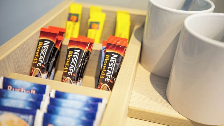 Im hoteleigenen Bistro werden traditionelle Pub-Mahlzeiten angeboten. Gäste können zudem in der Bar einen Drink geniessen oder sich auf der Terrasse des Biergartens entspannen. Essenslieferungen in die Unterkunft sind ebenfalls möglich. Für den kleinen Hunger stehen evtl. Znüni oder Zvieri bereit.