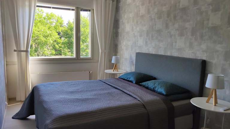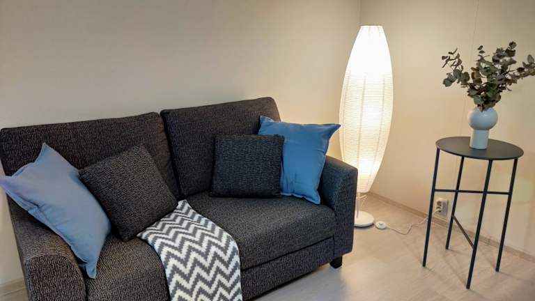 Die Ferienwohnung umfasst ein Schlafzimmer, ein Wohnzimmer sowie eine voll ausgestattete Küche mit Kühlschrank und Wasserkocher. Des Weiteren steht ein Badezimmer mit Dusche und kostenloser Pflegeprodukten zur Verfügung. Handtücher und Bettwäsche werden bereitgestellt.