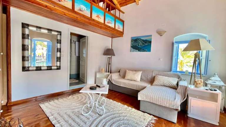 Nikolakis, Seafront- Harbor view bietet Übernachtungsmöglichkeiten mit kostenlosem WLAN, einer Klimaanlage, einem eigenen Strandbereich und einem Tennisplatz. Die Unterkunft zeichnet sich durch Stadt- und Meerblick aus.