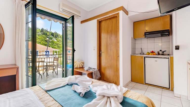 Nikoleta Studio 4 ist eine klimatisierte Ferienwohnung, die eine gemütliche Atmosphäre bietet. Die Unterkunft verfügt über einen Balkon mit herrlichem Bergblick und eine Terrasse mit Meerblick. Es sind Nichtraucherzimmer vorhanden und die Unterkunft wird zwischen den Aufenthalten desinfiziert.
