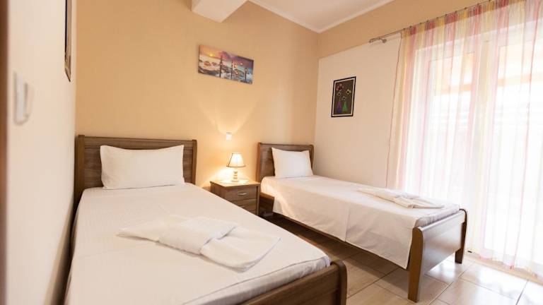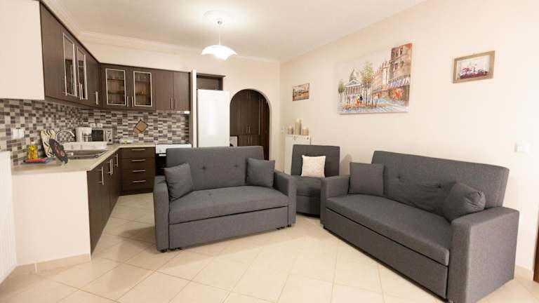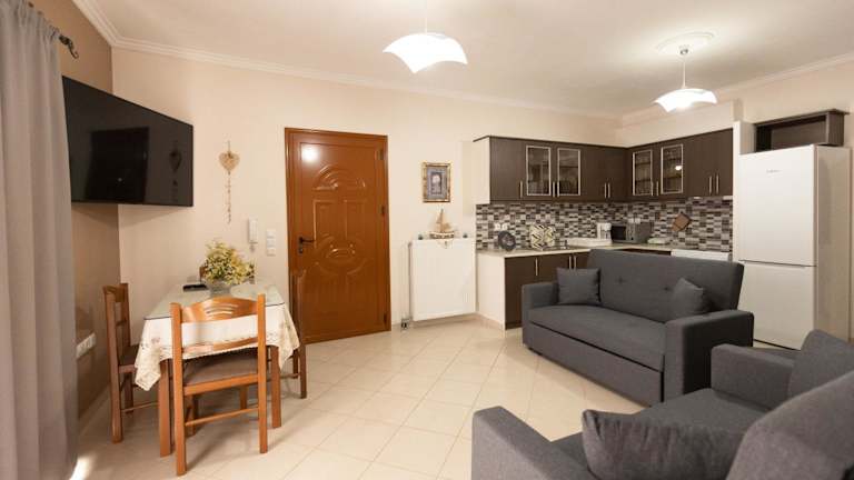 Nikorina apts bietet Übernachtungsmöglichkeiten und verfügt über klimatisierte Wohneinheiten mit Fliesenböden und einem eigenen Badezimmer. Die Unterkunft ist familienfreundlich und bietet Nichtraucherzimmer sowie einen Garten zur Entspannung. Die Check-in Zeiten sind von 15:00 bis 22:00 Uhr, während der Check-out von 08:00 bis 10:00 Uhr erfolgt.
