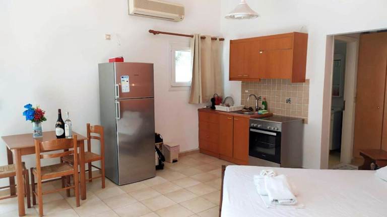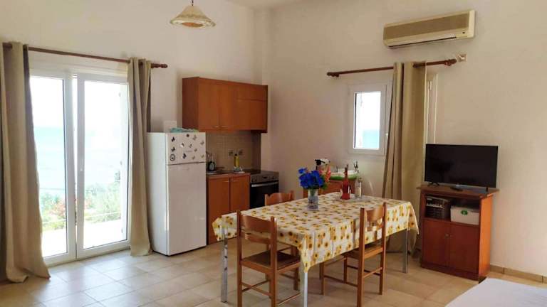 Alle Wohneinheiten verfügen über eine Terrasse mit Meerblick und sind mit einer Klimaanlage ausgestattet. Jede Wohneinheit beinhaltet eine Küche mit Kühlschrank und Ofen sowie ein eigenes Badezimmer mit Dusche.