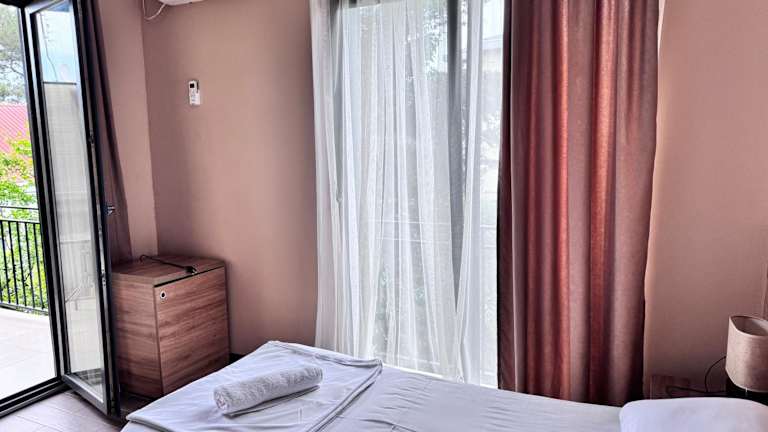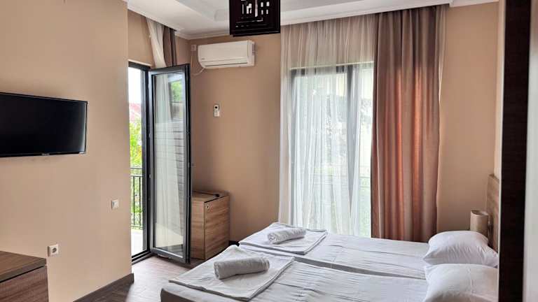 Die Unterkunft Nina two befindet sich direkt am Strand in Kobuleti, 1,5 km vom Bahnhof Kobuleti entfernt. In unmittelbarer Nähe liegt die Festung Petra, 6,7 km entfernt, und der nächstgelegene Flughafen, der Internationale Flughafen Batumi, ist 34 km von der Unterkunft entfernt. Weitere Sehenswürdigkeiten sind der Seehafen von Batumi, 26 km entfernt, sowie die Festung Gonio in 40 km Entfernung. Die Unterkunft bietet ebenfalls einen kostenlosen Privatparkplatz und einen kostenpflichtigen Flughafentransfer.
